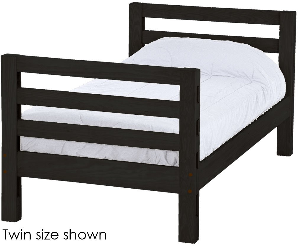 Options include extra-long for big kids and a taller version to allow 8" more headroom under the bed for comfortable seating when you add the upper bed.
