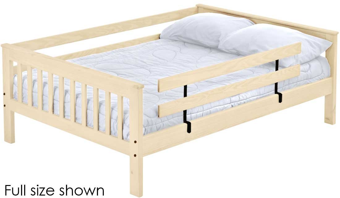A full length rear guardrail and a removable front guardrail are included. Add optional drawers or a trundle bed for maximum use of your floor space.