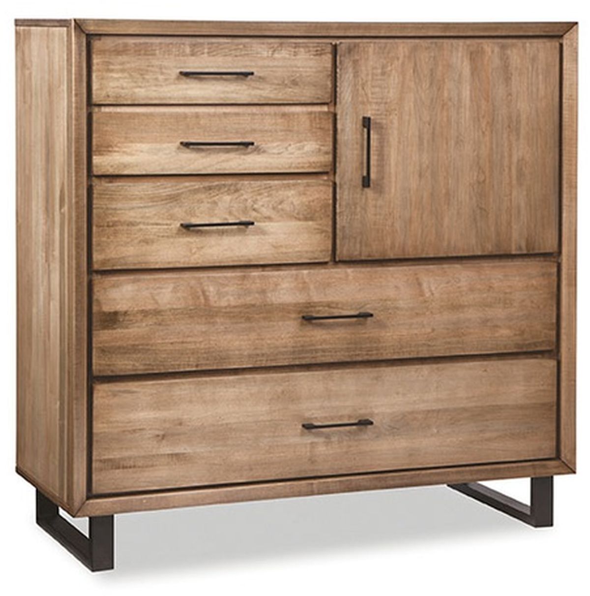 Odyssey transitional dressing chest in desert sand finish. Has a matte black base, and soft close drawers.Read More