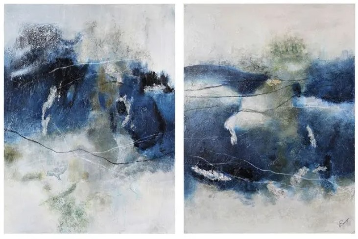 The exquisite elegance of marble is captured in this canvas art. Each art painting’s plays a different pattern of vivid blue, but the two are equally captivating. Hanging with a client's classic interior, these canvases set a serene tone for their bedroom, dining room or living room space.Read More